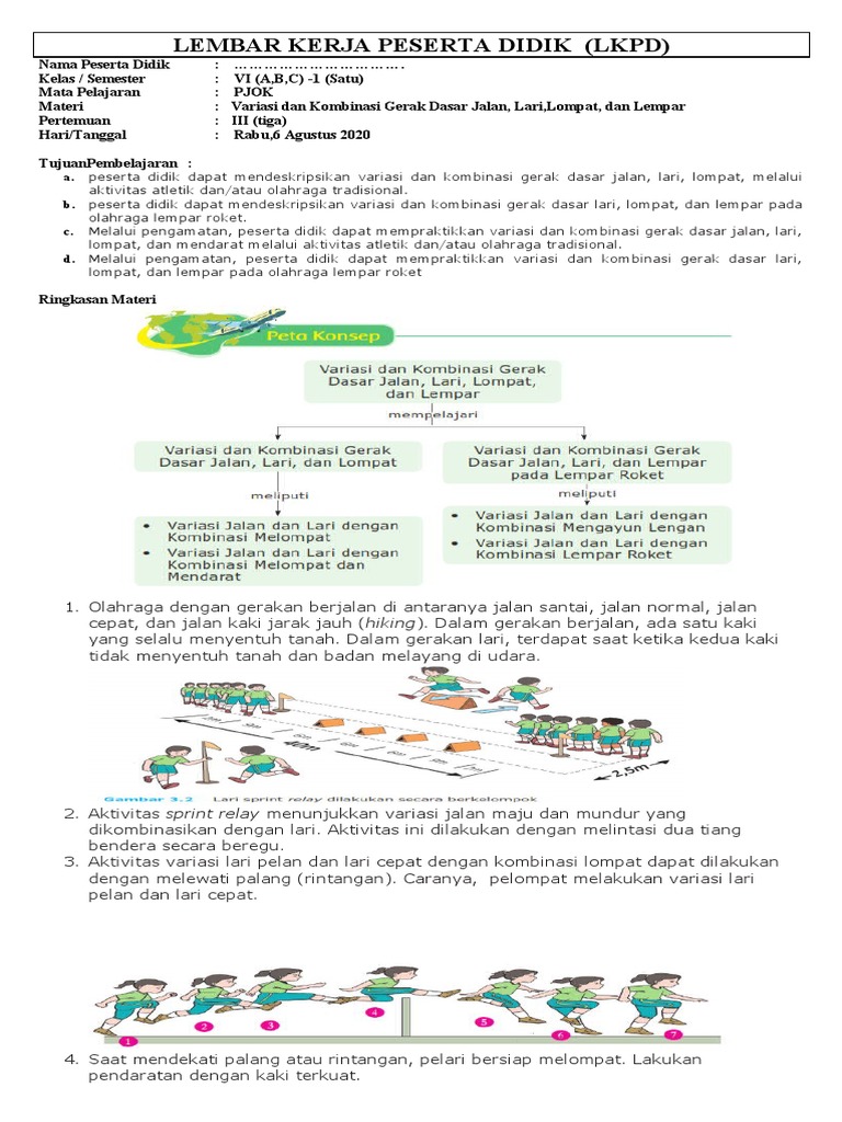 Gerakan lempar roket sesuai gerakan lempar lembing. Setelah melakukan awalan pendek peserta melempar lembing anak ke area. Kegiatan lempar dapat menggunakan roket. Gerakan lempar roket seperti pada tayangan video. Kombinasi jalan dan lari pada gerakan awalan lempar roket 2 lari, lompat, dan lempar melalui lompat jauh dan lempar roket pjok/penjas kelas 5 sd/mi.